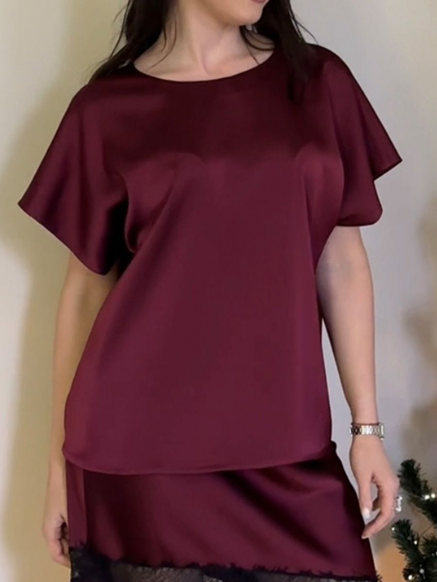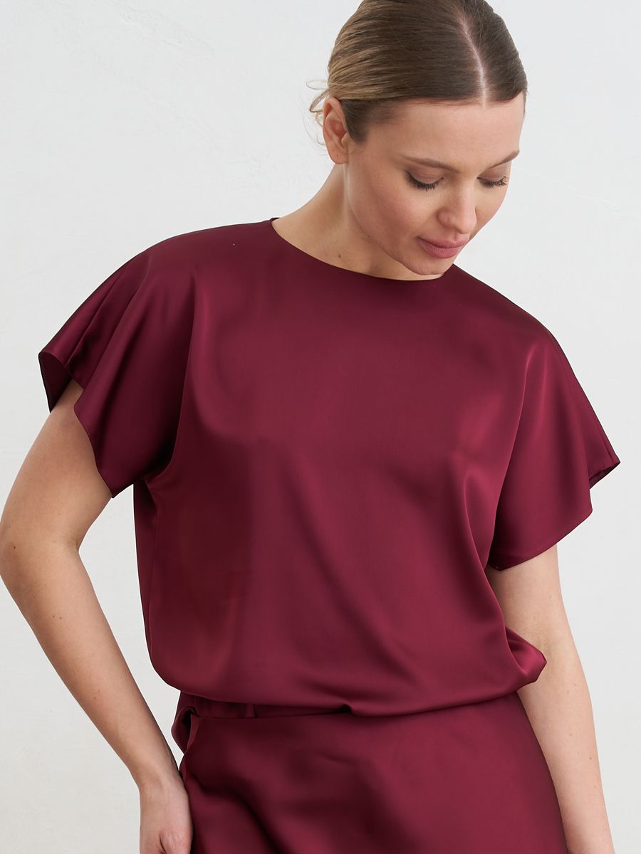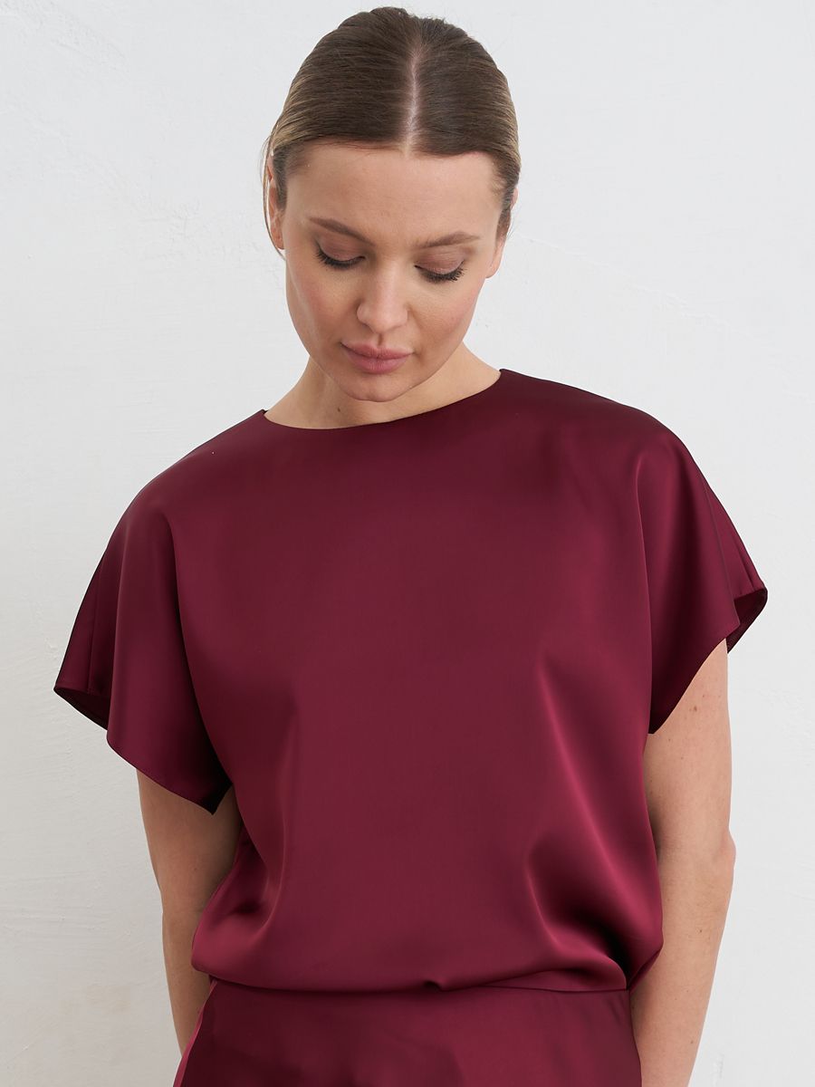 Лаконичный атласный топ свободного кроя с мягким благородным блеском.