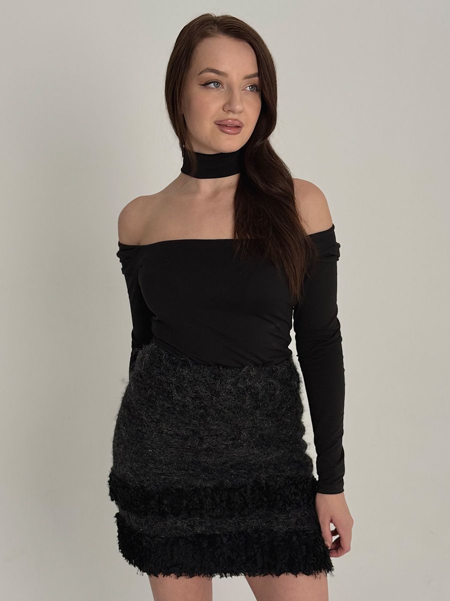 Стильная мини-юбка из мягкого мохера с выраженной фактурой.